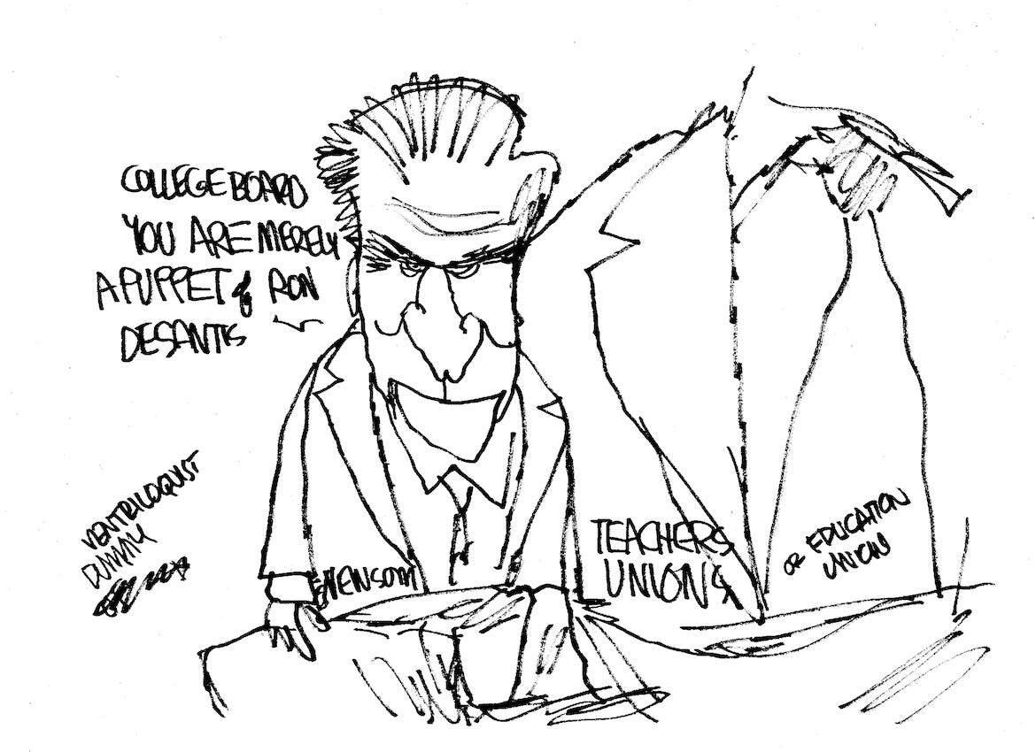 Governor Newsom accuses the College Board of caving in to Governor DeSantis when it is obvious he is the one beholden to teachers' unions and the WOKE crowd. —Michael
