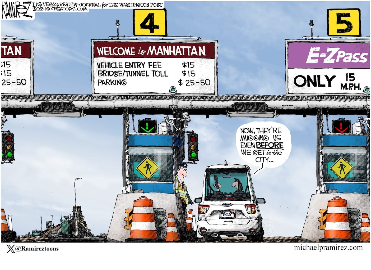 Saturday Cartoon: New York City to charge a vehicle entry fee for Manhattan.—Michael